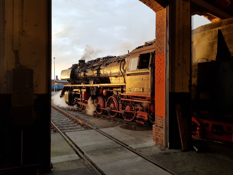 Erfreulich war auch, dass unsere 50 3570 nach erfolgter Hauptuntersuchung wieder unter Dampf stand und diverse Führerstandsmitfahrten absolvieren konnte. Leider ist der Original-Tender noch nicht fertig gestellt, so dass die Lok vorübergehend mit dem betriebsfähigen Tender der Dampflok 50 3682 gekuppelt wurde. Das hat nach einigen Anpassungsarbeiten am Übergang zwischen Lok und Tender nicht nur gut funktioniert. Der neue Anblick hat wohl auch die Eisenbahnfotografen gefreut, für die wir am späten Samstagnachmittag im besten Abendlicht einige Motive arrangieren konnten. Die folgenden Fotos entstanden in diesem Rahmen.