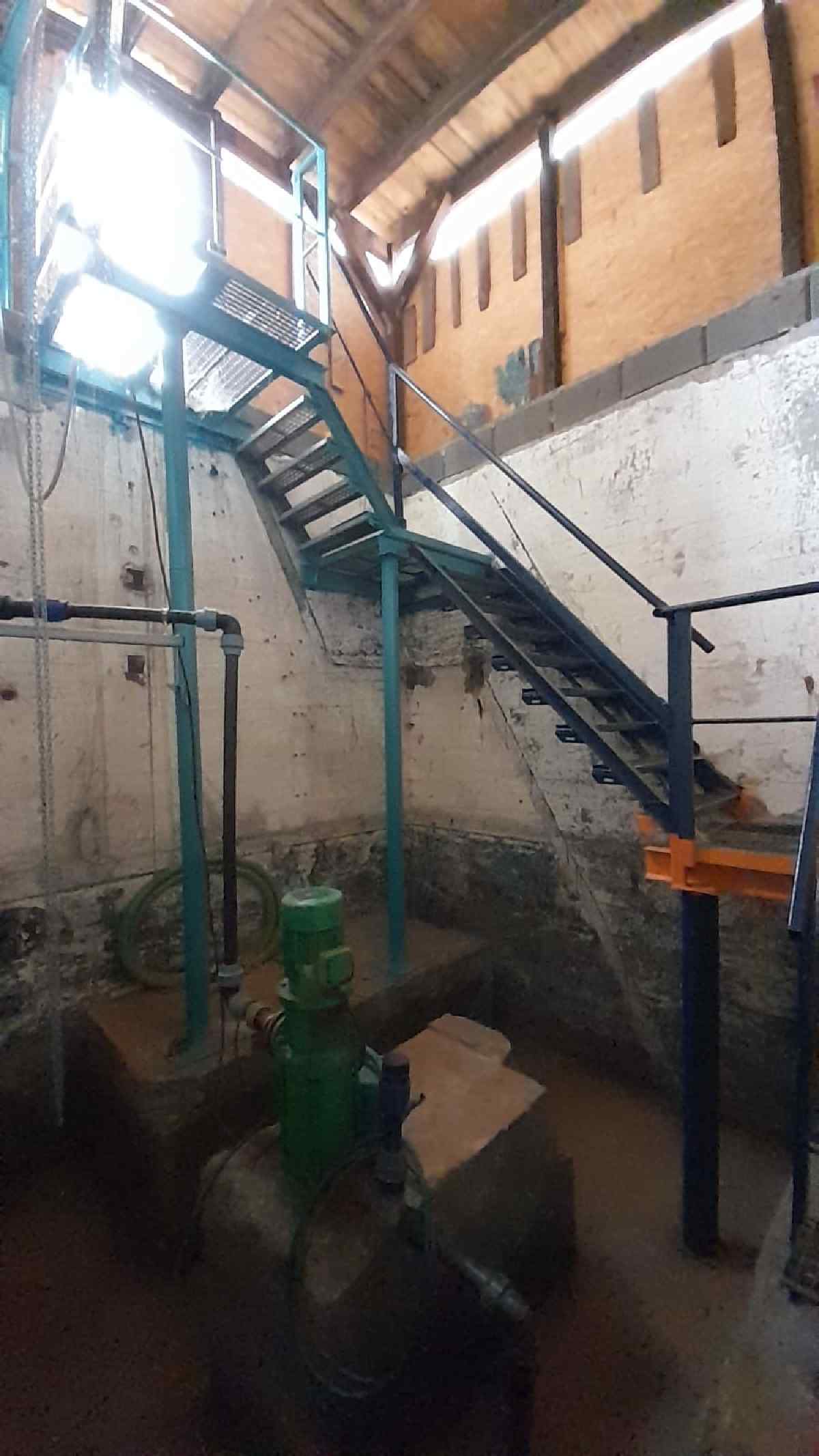 Wir erkennen einen rund vier Meter tiefen Schacht, der eine Grundfläche von vier mal vier Metern hat. Wir haben eine neue Treppe erstellt, die Saugleitung aus dem Brunnenschacht wiederhergestellt und eine elektrische Pumpe eingebaut.