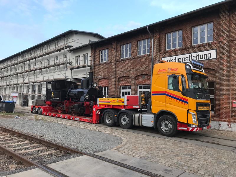 Heute gab es ein eher ungewöhnliches Bild in Wittenberge zu sehen. Denn wann rollt schon eine Dampflok mitten durch die Stadt? Das Rätsel ist schnell gelöst, denn heute wurde die Dampflok "Pritzwalk" per Tieflader beim Historischen Lokschuppen Wittenberge angeliefert. Die Lok kam huckepack aus Meyenburg, damit sie an der Jubiläumsveranstaltung des Museums am 12. und 13.10.2019 teilnehmen kann. Sie wird dann unter Dampf zu sehen sein, sich mit den anderen Lokomotiven des Museums bei den beliebten Führerstandsmitfahrten abwechseln und bekommt sicher auch einen Ehrenplatz in der Fahrzeugparade, die an den Veranstaltungstagen jeweils gegen 14:00 Uhr durchgeführt wird. Die kleine Lokomotive wurde übrigens 1912 bei Henschel in Kassel als Rangierlok für ein Gaswerk in Frankfurt gebaut. Sie war dort bis 1968 im Einsatz und fristete danach ihr Dasein jahrzehntelang als Denkmal, zuletzt vor einem Modellbahngeschäft in Wuppertal. 1999 wurde sie von der Prignitzer Eisenbahn, der Vorläuferin der heutigen Eisenbahngesellschaft Potsdam, erworben und vor kurzem betriebsfähig aufgearbeitet. Die Vereinsmitglieder freuen sich sehr, die Lok anlässlich des Vereinsjubiläums zu Gast zu haben. Die folgenden Bilder zeigen die Lok noch auf dem Spezial-Tieflader und nach dem Abladen im Schlepp einer Diesellok auf der Drehscheibe des Museums.