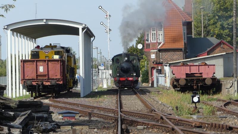 Bereits am Samstag, den 12.9., setzten wir unseren kurzen Museumszug bestehend aus Lok 0604 der OHE und einem zweiachsigen Personenwagen als Pendel zum Wittenberger Bahnhof ein.