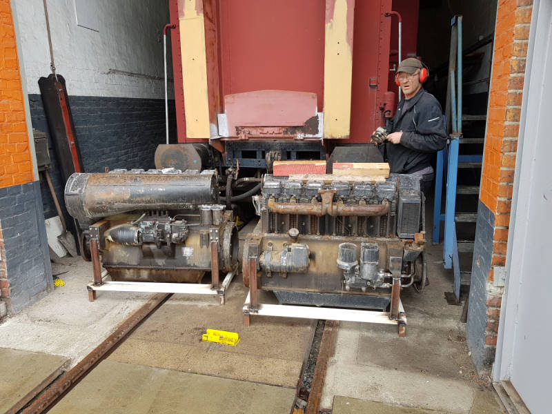 Vor einiger Zeit erhielten wir zwei luftgekühlte Dieselmotoren aus DDR-Produktion, die auch in Rangierlokomotiven zum Einsatz kommen. Dafür haben wir Transportrahmen gebaut. Die Motoren werden nun konserviert und lackiert. Einer wird in unserer Werkstatt als Schauobjekt ausgestellt. Der andere wird eingelagert.