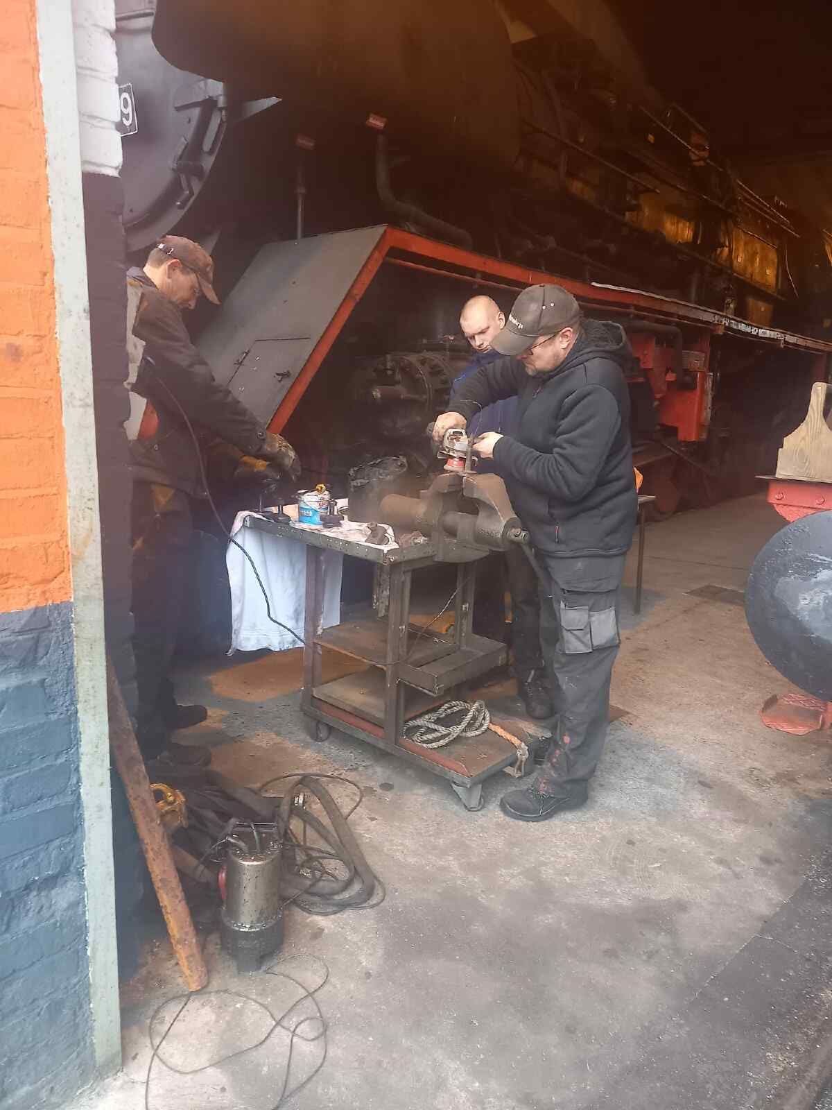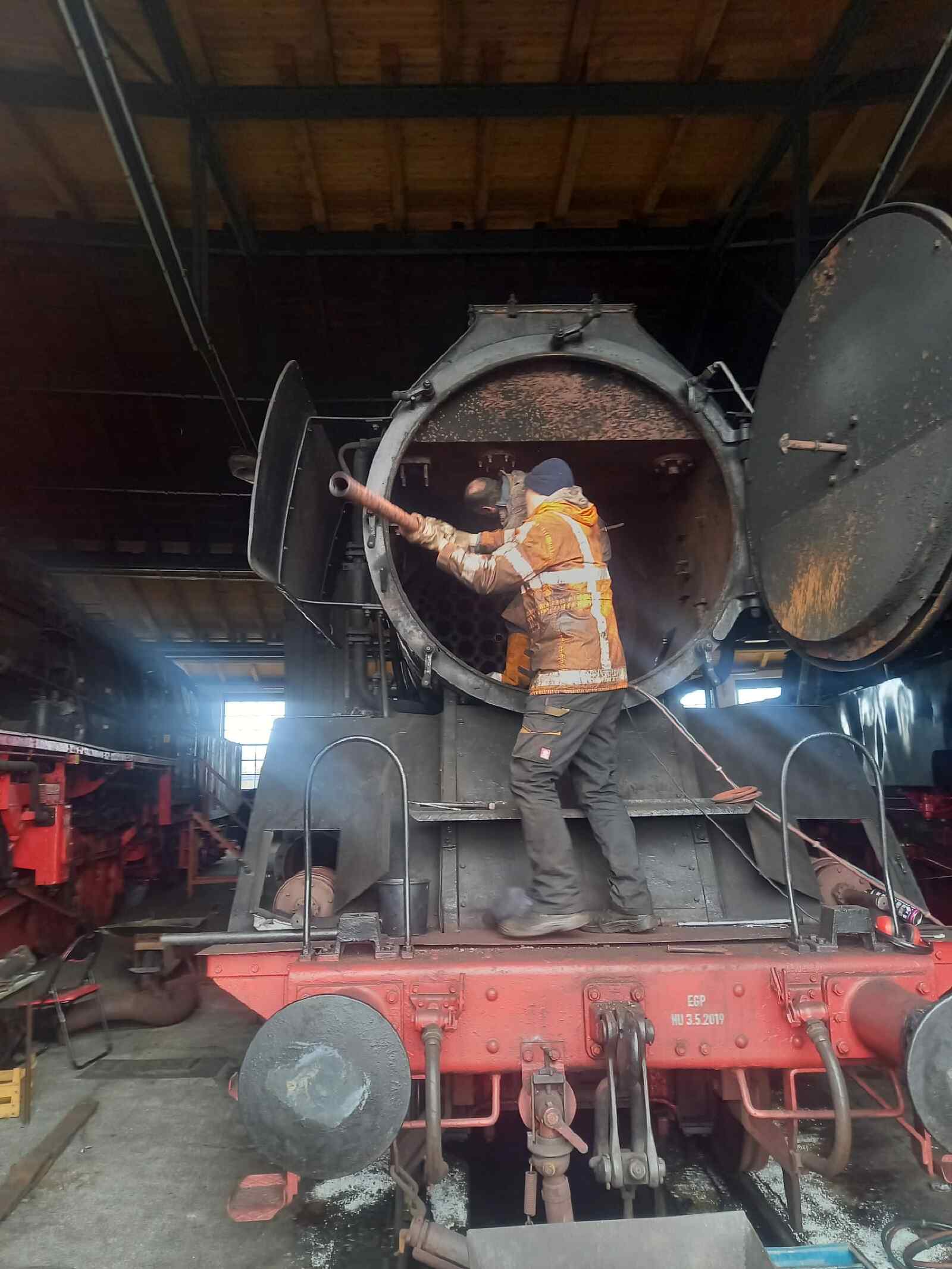 Am vergangenen Samstag haben wir unsere betriebsfähigen Dampflokomotiven zur Probe angeheizt und sind sie zur Probe gefahren. Das bedurfte noch einiger Vorbereitungen, die bereits teilweise schon am vergangenen Freitag absolviert wurden. So musste bei der Dampflok 50 3570 der Dampfregler eingebaut und der Dampfdom verschlossen werden. Vater und Sohn haben das erledigt.